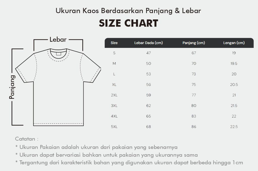 | Ukuran | S, M, L, XL, 2XL, 3XL, 4XL, 5XL |
